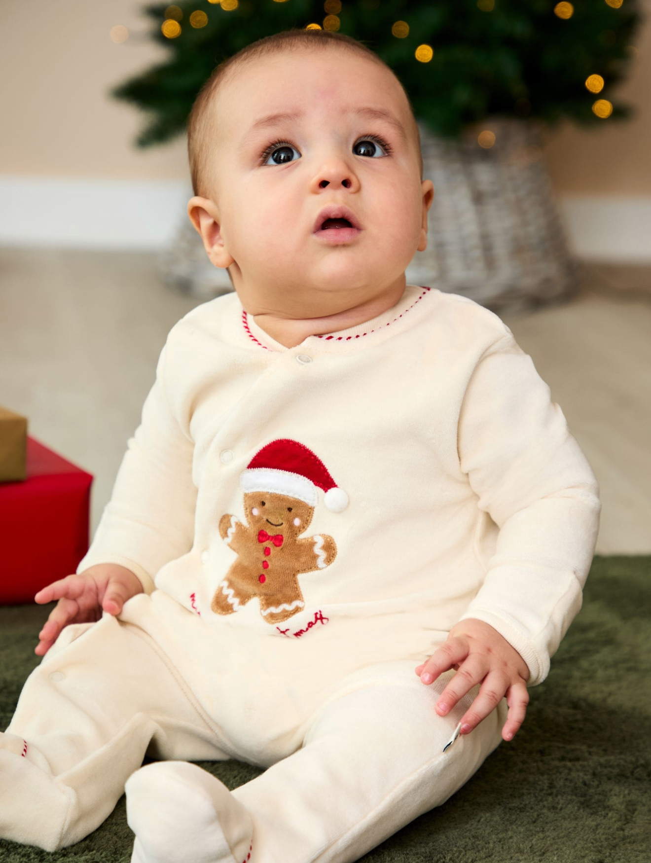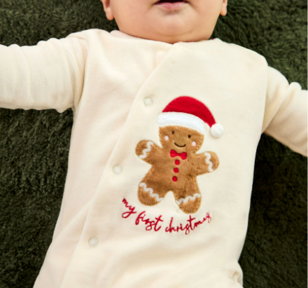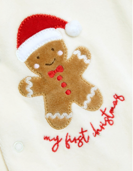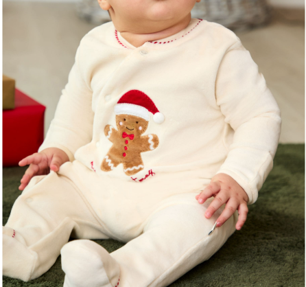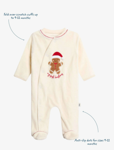 JoJo Maman Bébé Ekru İlk Noel Zencefilli Adamım Kadife Hepsi Bir Arada