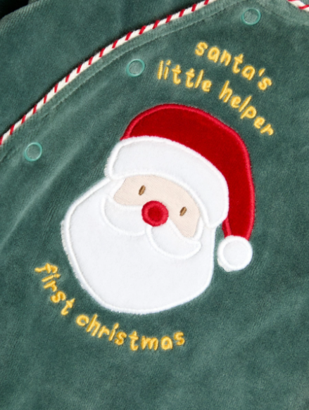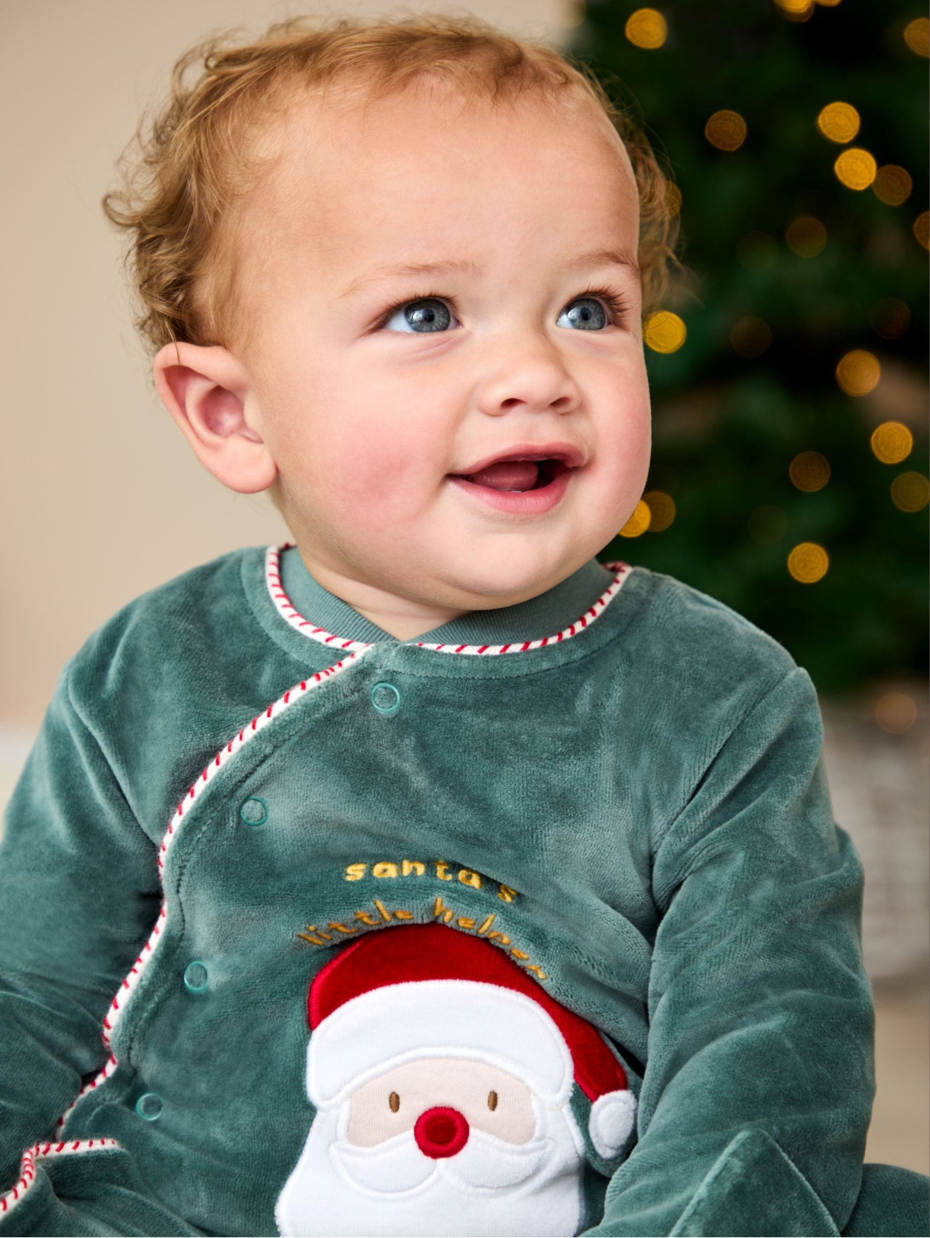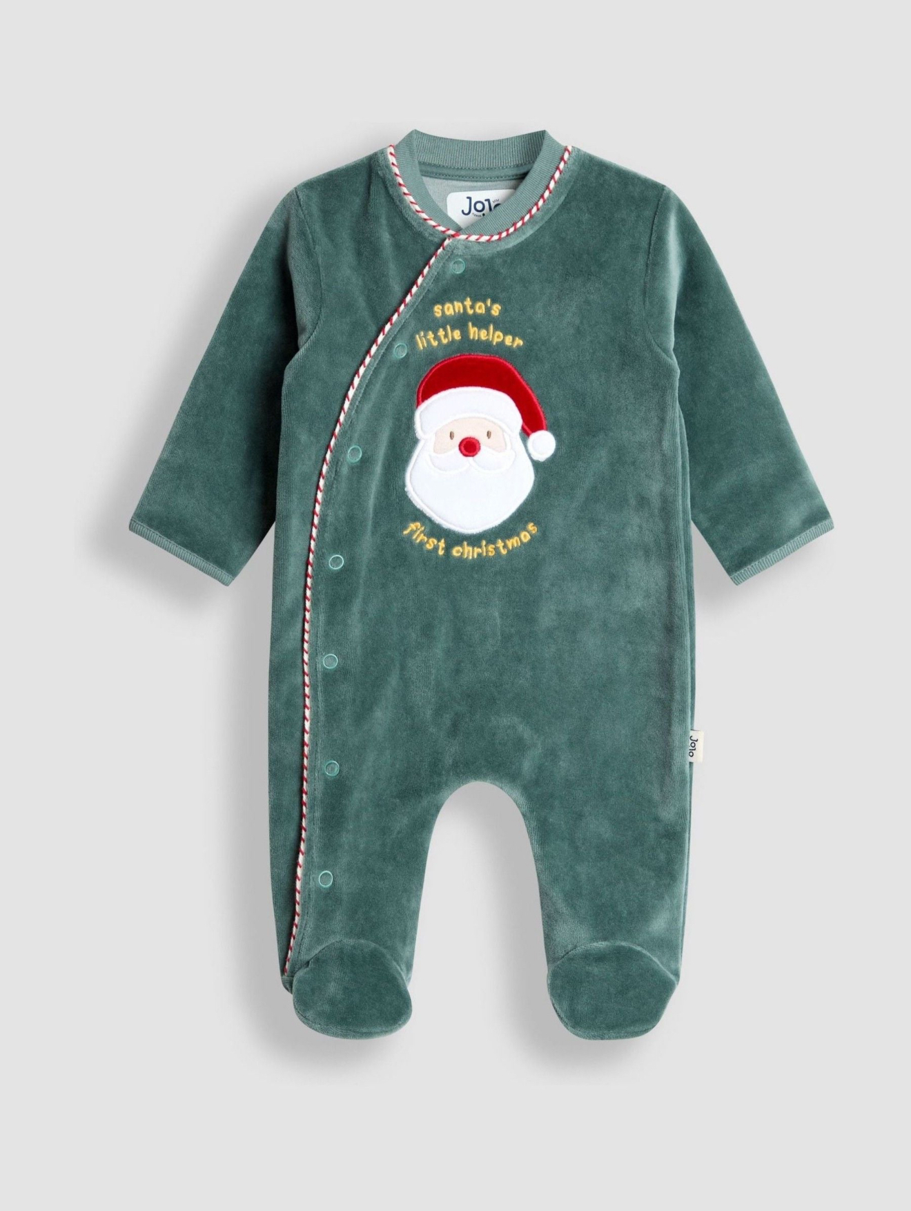 JoJo Maman Bébé Green Santa My First Christmas Velour All-In-One
